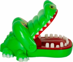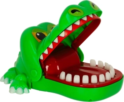 Ce jeu de crocodile très apprécié possède 13 dents sur lesquelles on peut appuyer tour à tour. Il n’y a qu’une seule dent « douloureuse », choisie aléatoirement à chaque ouverture de la mâchoire – le jeu est donc imprévisible et toujours amusant. Les dents ne sont pas tranchantes et la fermeture est légère, ce qui rend la partie sûre même pour les plus jeunes enfants.