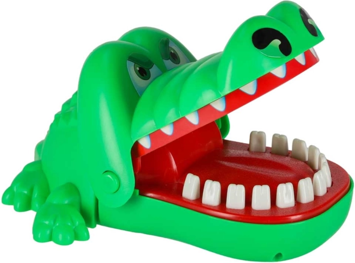 Chaque ouverture de la gueule choisit aléatoirement une « dent douloureuse ». On ne sait jamais quand le crocodile claquera – amusement et surprise garantis.