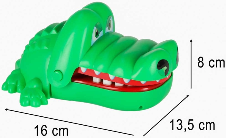 Le jeu d’adresse avec crocodile est simple, palpitant et addictif. À chaque ouverture de la gueule, une dent douloureuse est désignée au hasard, donc on ne sait jamais quand le crocodile claquera. Grâce aux dents arrondies et sûres, le jeu convient même aux plus jeunes et développe parfaitement réflexes et patience.