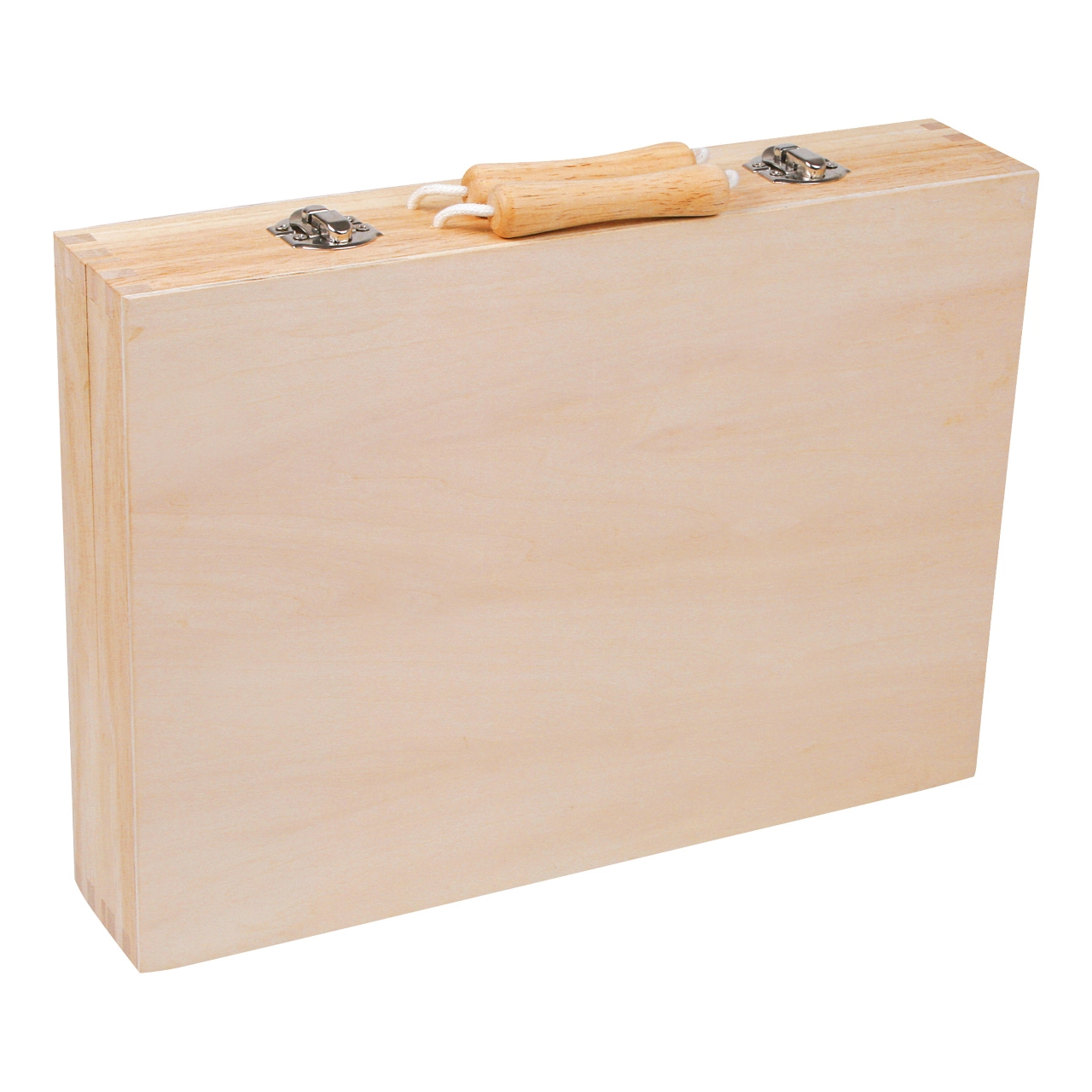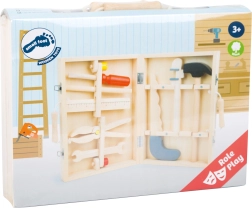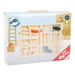Offrez aux enfants une expérience authentique du travail avec des outils grâce à la valisette Small Foot Maik. Tout est rangé de manière claire dans une valise robuste en bois avec poignées en corde. Le marteau, la scie et la clé à molette sont maintenus en place, les autres pièces se placent dans des supports rabattables qui peuvent être facilement retirés à l’aide de grosses vis en bois.