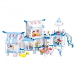 La villa flottante avec piscine développe l'imagination grâce à la possibilité de construire et de jouer différents scénarios avec des figurines miniatures.