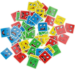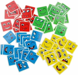 Un jeu logique amusant pour enfants et adultes qui développe la reconnaissance des émotions, la pensée logique et la motricité fine. Faites pivoter les cubes en bois colorés et, selon les cartes, composez l’expression de visage correcte – gagne celui qui crée le plus de combinaisons en un minimum de temps. Fabrication sûre en bois, 64 cartes d’expressions et 16 cubes en quatre couleurs pour des heures de jeu et d’apprentissage sans fin.