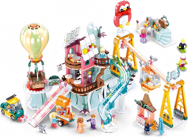 Assemblez la piste de ski, des chalets et un ballon à air chaud pour créer une destination hivernale animée avec de multiples scénarios de jeu.