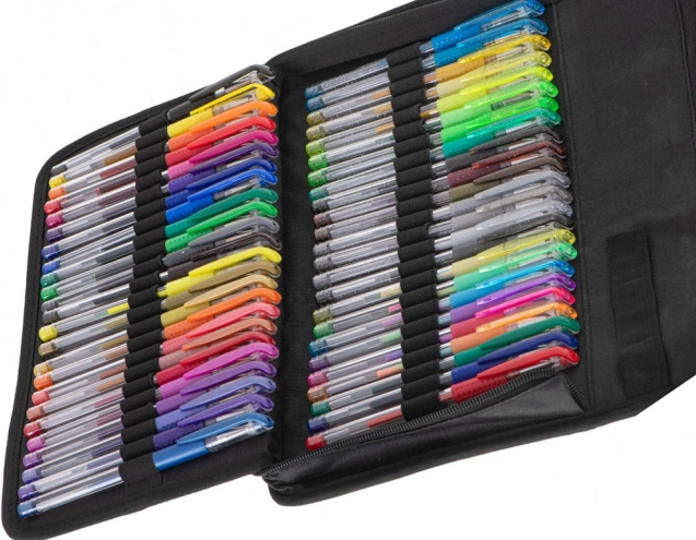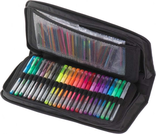 La trousse textile zippée avec élastiques et poches en maille maintient les 120 stylos en toute sécurité et bien organisés au même endroit – idéale à la maison comme en déplacement.