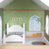 Deux étages reliés par un escalier en colimaçon offrent un accès facile à toutes les pièces et permettent à plusieurs enfants de jouer confortablement en même temps.