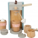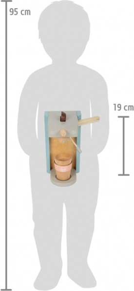 Les enfants profitent d’une préparation authentique du café : ils insèrent une capsule, abaissent le levier et décorent la boisson avec une mousse magnétique. Idéal pour jouer au café.