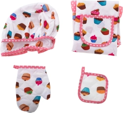 Avec cet adorable ensemble de cuisine, les enfants peuvent découvrir le charme de cuisiner directement dans votre cuisine. Idéal pour développer les capacités manuelles et la coopération entre parents et enfants, cet ensemble ne déçoit pas. Comprend un tablier, un gant, une toque de chef et une manique, tous décorés de cupcakes colorés, illuminant chaque activité culinaire.