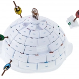 Règles du jeu : suivez les instructions pour construire l'igloo. Choisissez votre pingouin et commencez à jouer. L'objectif est de garder Parka Pete sur l'igloo. Les joueurs se relaient pour retirer les blocs de glace à l'aide d'une tige glacée. Celui dont l'igloo s'effondre perd.