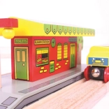 La gare est fabriquée en bois de qualité, issu de sources responsables et respecte les normes européennes de sécurité actuelles. Des couleurs claires et des lignes épurées créent une ambiance accueillante pour les petits voyageurs.