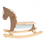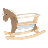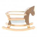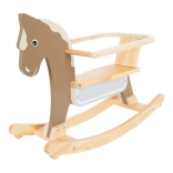 La sécurité avant tout : l’arceau amovible et le dossier haut maintiennent les jeunes cavaliers en selle, les butées garantissent une bascule sereine et les patins larges apportent de la stabilité. La selle à 26 cm de hauteur facilite l’accès même pour les plus petits.