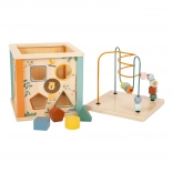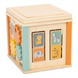 Plongez dans diverses activités avec le cube d’activité Safari en bois pour enfants. Grâce à une combinaison colorée de labyrinthes coulissants et à perles, de blocs rotatifs, de rouages et d’un jeu d’encastrement, votre enfant profitera d’heures de jeu tout en développant ses compétences. Orné de motifs d’animaux du safari, ce cube est un excellent jouet pour tous les enfants curieux.