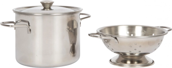 - Une casserole avec couvercle et une passoire, toutes deux réalistiquement fabriquées en métal résistant,