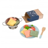 Devenez un maître dans la cuisson des pâtes avec notre ensemble complet de vaisselle pour enfants, qui comprend des répliques attrayantes de pâtes en feutrine et d'autres ingrédients. La conception réaliste des ustensiles en métal et les accessoires créatifs stimuleront le développement de l'imagination des enfants et leurs compétences sociales.