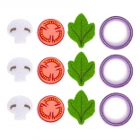 - des répliques en feutrine de trois types de pâtes et de douze autres ingrédients colorés,