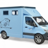Ce transporteur de chevaux finement détaillé s’inspire du célèbre utilitaire MERCEDES‑BENZ Sprinter. Les enfants adoreront la cabine fonctionnelle avec portes ouvrantes, la caisse réaliste pour un transport sécurisé et les nombreuses options de jeu – de la montée par la rampe jusqu’à la cloison adaptée à deux chevaux.