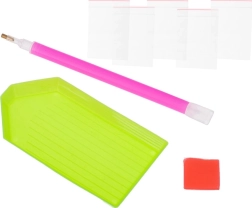 Le set contient tout ce dont vous avez besoin pour créer une œuvre d'art éclatante : image, pierres colorées, applicateur, colle sèche et plateau.