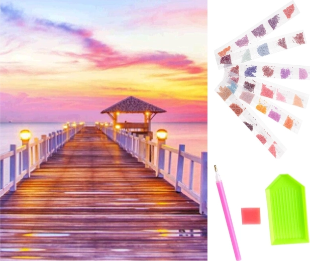 Réveillez l’artiste qui est en vous grâce à ce set de peinture diamant et créez une œuvre d’art magnifique. Le set contient tous les accessoires nécessaires pour réaliser facilement une superbe mosaïque représentant une jetée au coucher du soleil.