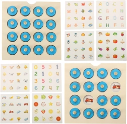 Jouet éducatif en bois avec chevilles amovibles et images avec des chiffres. Aide les enfants à apprendre les nombres et à développer les compétences motrices en associant les chevilles aux images correspondantes.