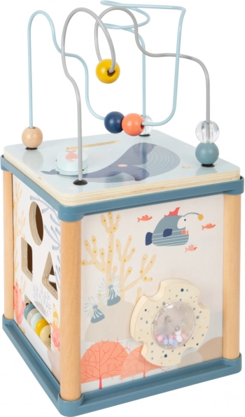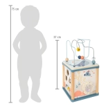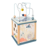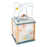 Ce cube d’activités en bois au motif du monde sous-marin propose cinq faces pleines d’animations et, en plus, une amusante pêche magnétique – les pièces du puzzle à encastrer peuvent être pêchées avec la canne magnétique directement à l’intérieur du cube. Les illustrations colorées des animaux marins stimulent la perception visuelle, tandis que la pieuvre élastique ajoute une touche ludique qui incite les enfants à explorer davantage.