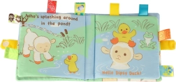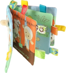 Le livre est composé de quatre feuilles en tissu contenant une courte histoire en anglais, ce qui aide à familiariser les enfants avec une langue étrangère dès le plus jeune âge.