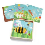 Mosaïque créative en bois pour les enfants dès 3 ans, développe la motricité fine, la perception des couleurs et la concentration. Contient 4 images et 96 chevilles en 8 couleurs, à assembler sur le couvercle de la boîte pratique – idéale à la maison comme en voyage. Fabriquée en bois de qualité, issu de sources responsables avec une surface agréable pour une stimulation tactile naturelle.