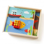 Découvrez une mosaïque amusante sur le thème de la plage qui stimule l’imagination et les compétences des enfants. Elle comprend 4 images et 96 chevilles en 8 couleurs que les enfants placent sur le couvercle de la boîte pratique. Le jeu favorise la reconnaissance des couleurs, la motricité fine, la concentration et la pensée logique. Fabriqué en bois de qualité, issu de sources responsables – agréable au toucher et idéal pour les déplacements.