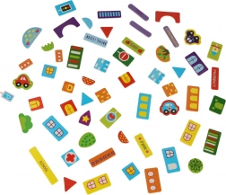 - env. 100 aimants pour créer des scènes sur le thème de la ville