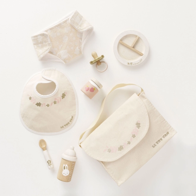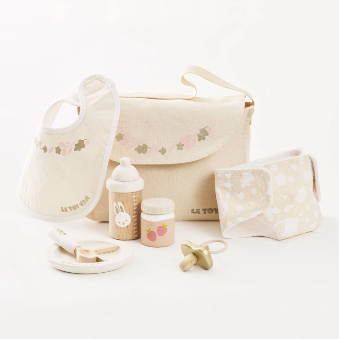 Prendre soin des poupées et des peluches n’a jamais été aussi amusant et inspirant. L'ensemble de soins Le Toy Van offre un équipement complet pour les petits soignants. Il comprend un sac à langer en tissu avec un motif décoratif, une sucette, un bavoir, une couche, une assiette, une cuillère, une compote et un biberon. Chaque pièce est fabriquée avec un souci de durabilité et de qualité pour résister à de nombreuses heures de jeu.