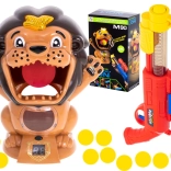 Lion affamé – tir sur cible avec pistolet et balles en mousse