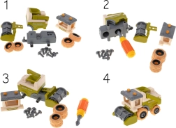 Le tracteur, la moissonneuse-batteuse et les remorques peuvent être facilement démontés et remontés à l'aide du tournevis et de la perceuse sans fil. Les enfants entraînent leur motricité fine et comprennent les principes de base de la construction des machines.