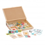 • Équipement complet : 70 pièces en bois, 80 cartes de vocabulaire, 30 cartes d’exercices, 12 cartes de score.