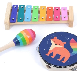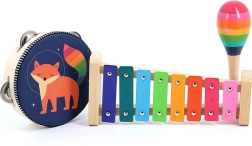 L’ensemble comprend un xylophone, un tambourin, un triangle et des maracas, ce qui en fait un excellent outil éducatif pour développer les aptitudes musicales et le sens du rythme des enfants.
