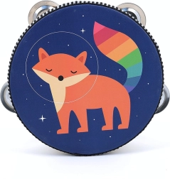Le tambourin est décoré d’une adorable illustration de renard à queue arc-en-ciel sur fond bleu, offrant aux enfants une façon joyeuse de faire de la musique.