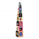 Une tour empilable unique qui atteint jusqu’à 87 cm de haut, remplie d’illustrations colorées d’animaux de cirque et de chiffres. En s’amusant, les enfants apprennent à reconnaître les chiffres tout en développant leur motricité fine et leur coordination. Grâce à cette conception, le jouet se range facilement et offre une stimulation visuelle et un jeu créatif.