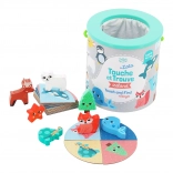 Vilac Hmatej et trouve l'Île n'est pas seulement un jeu, mais surtout une aventure pour le développement du toucher de vos enfants. Grâce à l'adaptation individuelle des règles, il est adapté aux enfants à partir de 2 ans. L'ensemble comprend :