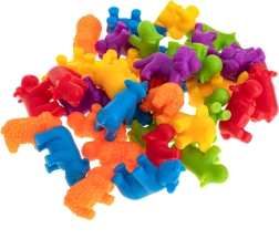 Ce set coloré associe jeu et apprentissage. Les petits explorateurs découvrent les bases du comptage, du tri par couleurs et de la reconnaissance des animaux de safari. Les pincettes pratiques soutiennent la motricité fine et la coordination œil-main, tandis que les bols facilitent le tri et l’addition.