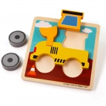 Puzzle à encastrer pour tout-petits avec motif de pelleteuse, fabriqué à partir de matériaux de haute qualité et approvisionnés de manière responsable. Excellent outil pour le développement de la motricité fine, de la pensée logique et de la reconnaissance des formes et des couleurs.