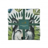 Le beau motif de loup entouré de feuilles vertes et de plumes bleues éveille le courage. Un élément décoratif qui donne un aspect unique à l'environnement.