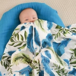 Habillez votre bébé avec confort et douceur. Cette couverture en mousseline de bambou est conçue pour un confort maximal avec un magnifique motif de plumes et de feuilles. Fabriquée à 70% de bambou et 30% de coton, elle est idéale pour les journées chaudes grâce à sa respirabilité et à sa sensation de fraîcheur.