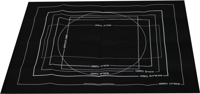 Des cadres de contour blancs sur le tapis indiquent la surface recommandée pour 500 à 3000 pièces, afin que vous sachiez toujours l’espace nécessaire.