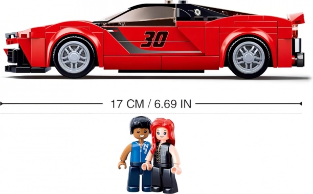 La finition rouge vive et les lignes aérodynamiques séduisent au premier regard. Des détails sportifs comme le numéro « 30 », des roues réalistes et un pare-brise sont au rendez-vous.