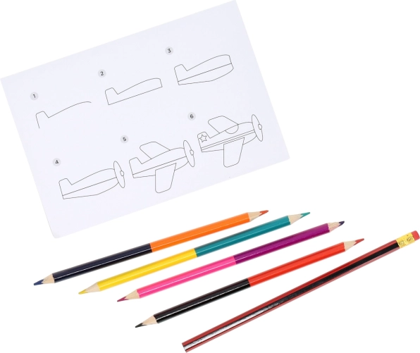 La trousse métallique zippée contient le guide, la plaque de dessin, 4 crayons de couleur double pointe et un crayon avec gomme. Idéal pour les voyages.