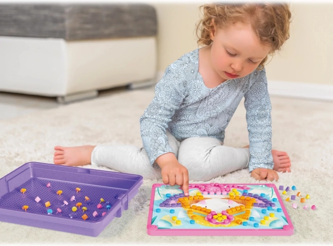 La mosaïque à chevilles Quercetti offre aux enfants dès 5 ans une activité ludique et éducative qui développe patience, imagination et précision. Grâce aux cartes préimprimées représentant des fées et d’autres personnages de contes, l’assemblage est intuitif et motivant.