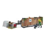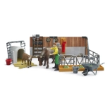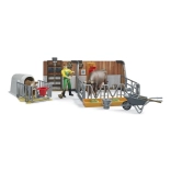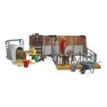 L'étable pour bétail est un jouet idéal pour les enfants qui souhaitent découvrir la vie à la ferme. Le set comprend des figurines de vache et de veau, une figurine de fermier articulée, un abreuvoir, une mangeoire et tous les outils nécessaires pour prendre soin des animaux.