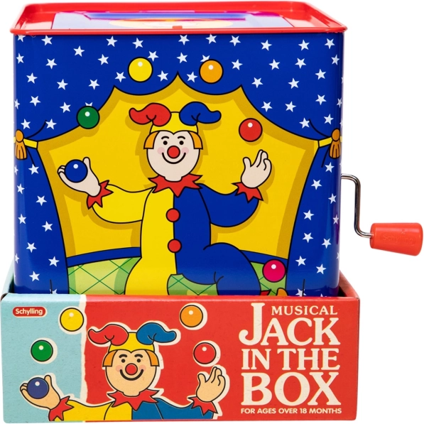 La boîte à musique Kasparek est un jouet intemporel en étain, au design magnifique, garantissant des heures de divertissement. Tournez simplement la manivelle et écoutez la mélodie de la chanson connue "Pop Goes The Weasel" jusqu'à ce que le Kasparek coloré apparaisse.