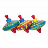 Découvrez la magie d'un jouet traditionnel – la toupie en métal de la marque Schylling. Ce jouet est doté de couleurs vives et de motifs rétro qui séduisent chaque enfant. La toupie se met en mouvement par une simple pression sur un levier, accompagnée d'un son typique que les enfants adorent.
