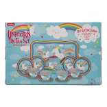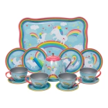 Adorable service à thé sur le thème de la licorne qui ravira les petites hôtesses et les petits hôtes. Il comprend 15 pièces en métal résistant – tasses, sous-tasses, assiettes, théière avec couvercle et un plateau de service 24 × 16 cm. Idéal pour les thés imaginaires et pour développer la créativité ainsi que les compétences sociales. Convient aux enfants à partir de 3 ans.