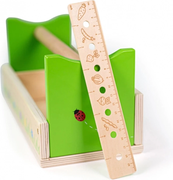 Ce set de jardinage coloré développe l’adresse, la patience et le lien avec la nature. Le tout est rangé dans une caisse en bois solide au design vert frais avec des coccinelles et des fleurs. Les enfants peuvent planter, aérer ou mesurer en toute sécurité tout en imitant les adultes.