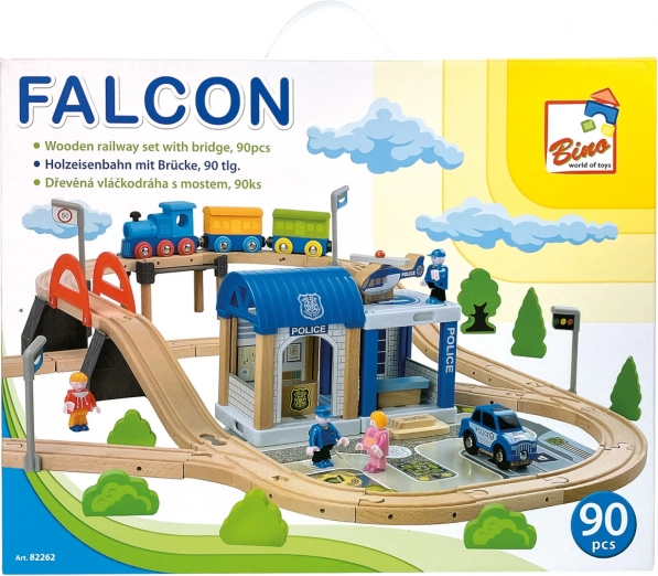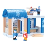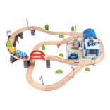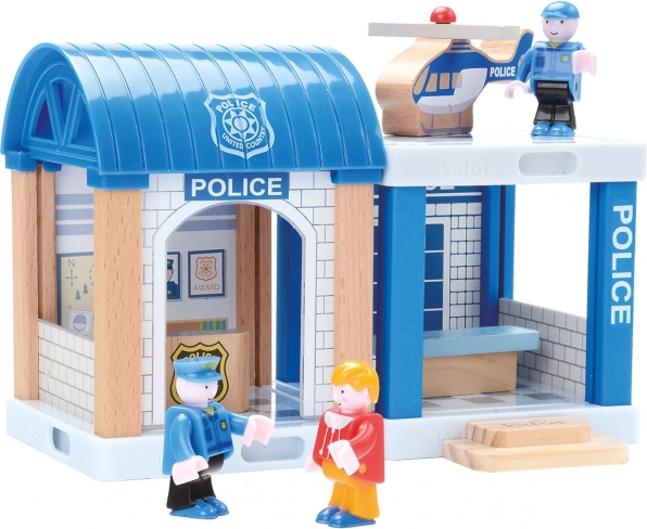 Ce circuit de train en bois richement détaillé est idéal pour les petits ingénieurs qui adorent les trains et les aventures policières. Il comprend une voie avec pont, un commissariat de police attrayant et d’autres accessoires, dont une petite voiture et un hélicoptère.