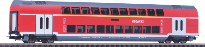Voiture voyageurs à deux niveaux DB Regio est un modèle fidèlement reproduit d’une voiture à quatre essieux de 1re et 2e classe. Il combine une finition précise avec le design authentique de l’opérateur allemand DB Regio, idéal pour des compositions avec des voitures et locomotives compatibles.